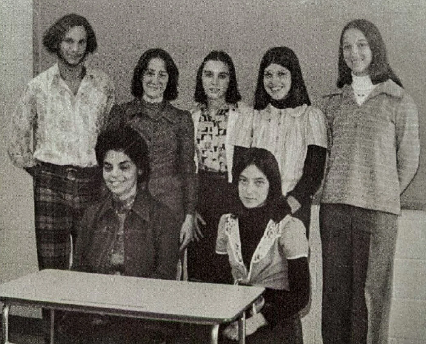Chris Bird, ~1980, top left, Fitchburg State College yearbook photo, Russian club (ancestry.com)