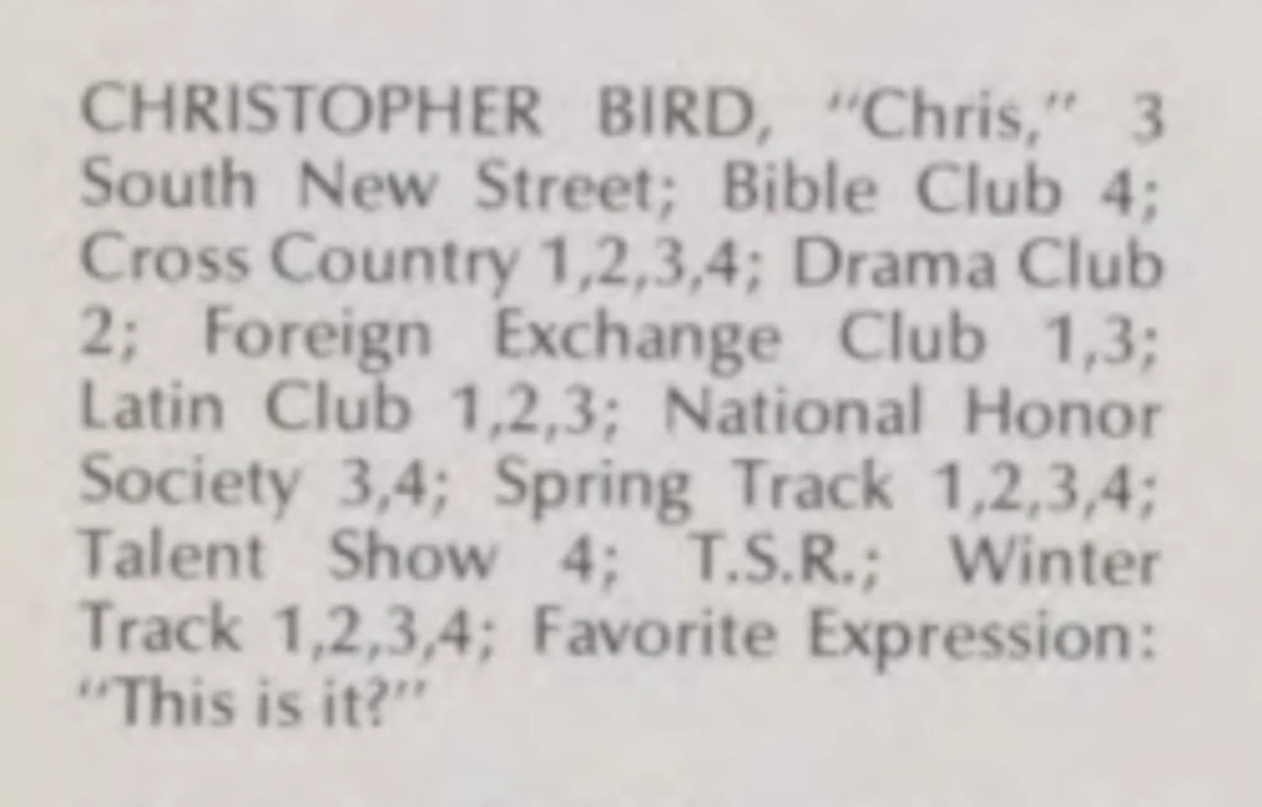 Chris Bird, ~1976, Haverhill HS yearbook photo (ancestry.com)