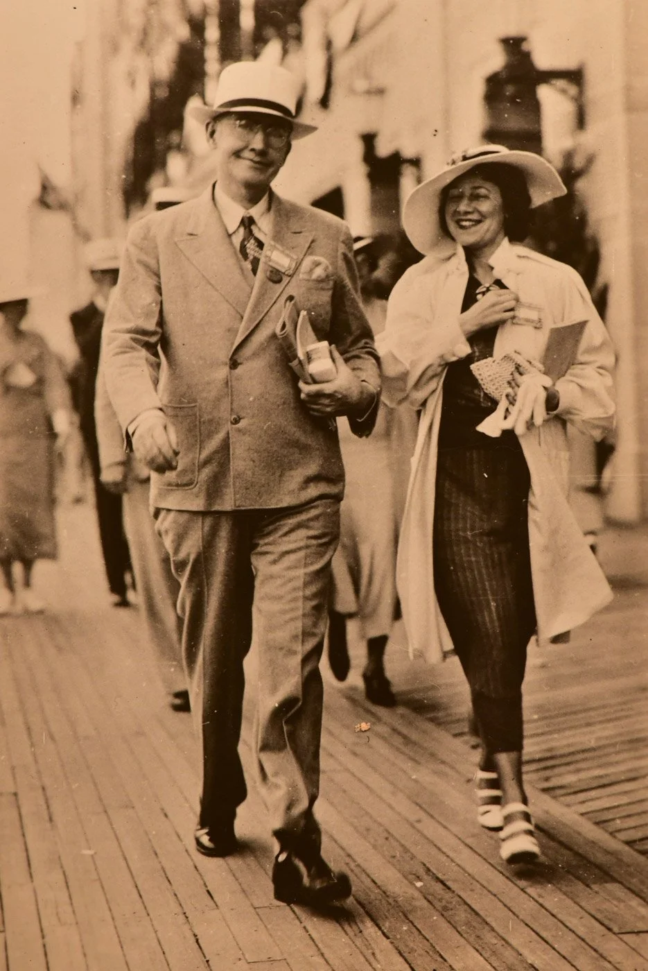 Bert Mortimer, Peggy Mortimer, walking on the boardwalk in Atlantic City, NJ (family archives)