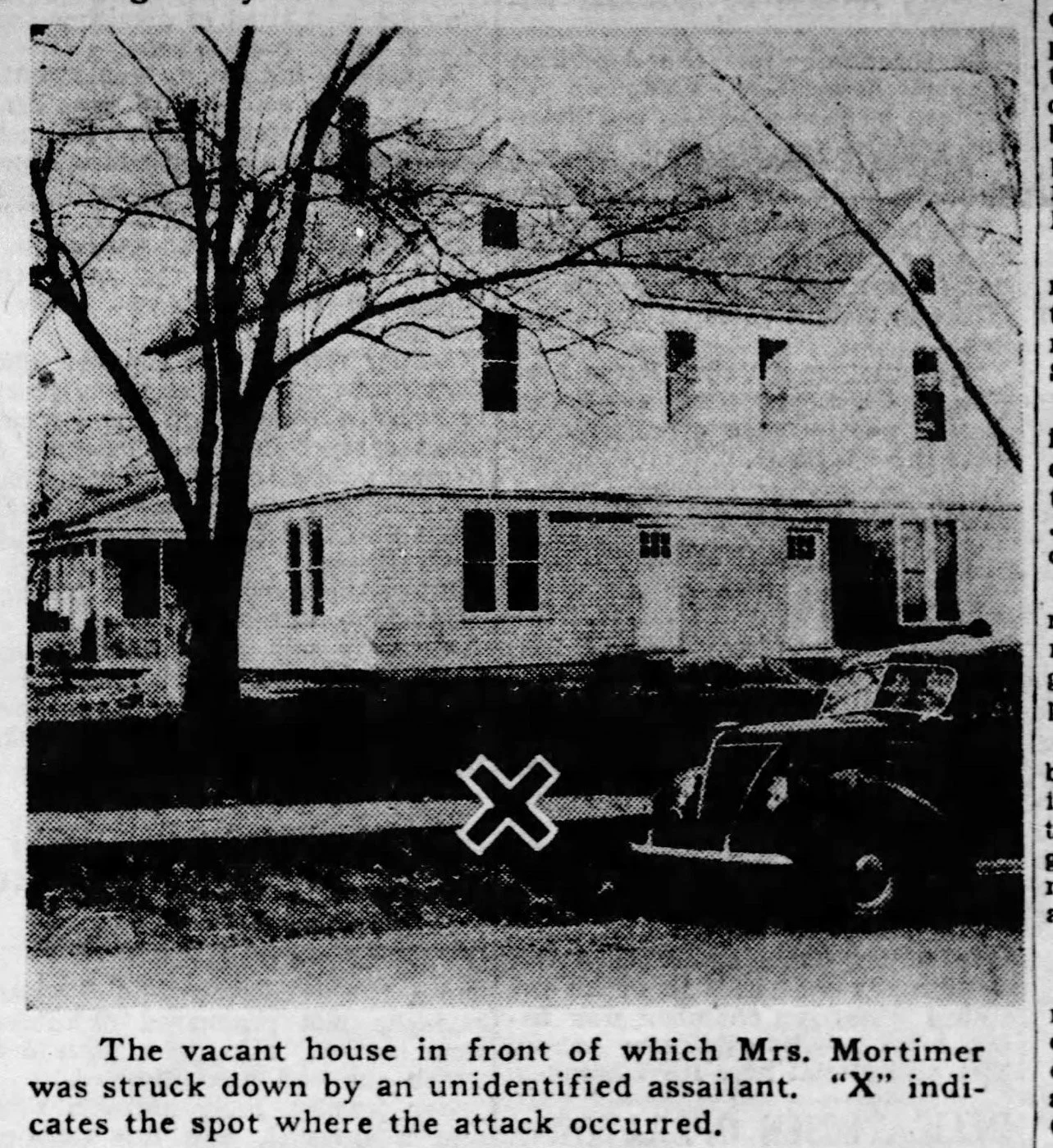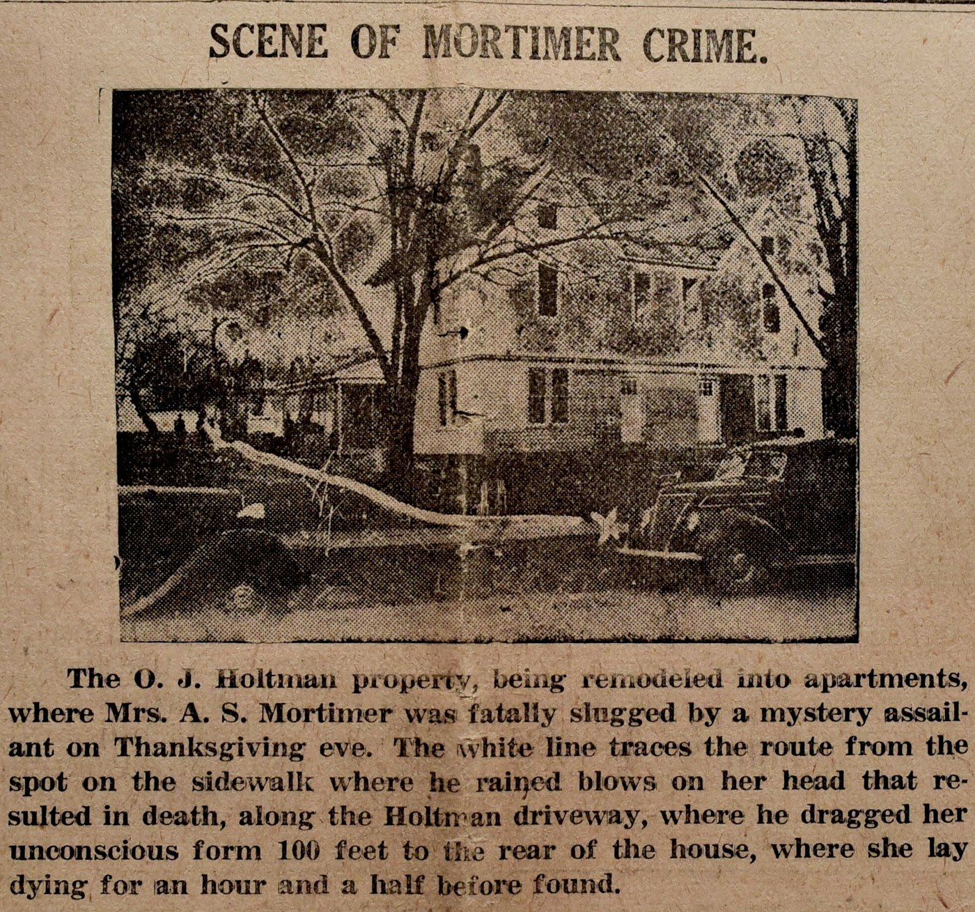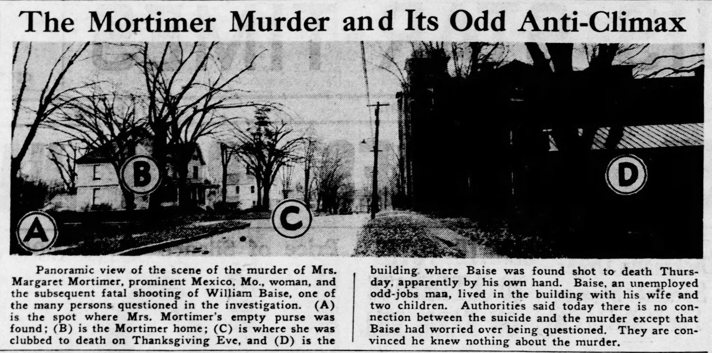Crime scene, Peggy Mortimer (St. Louis Star & Time)
